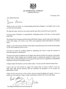 The letter sent by Liz Truss, the Prime Minister, to Kwasi Kwarteng, on 14 October 2022.